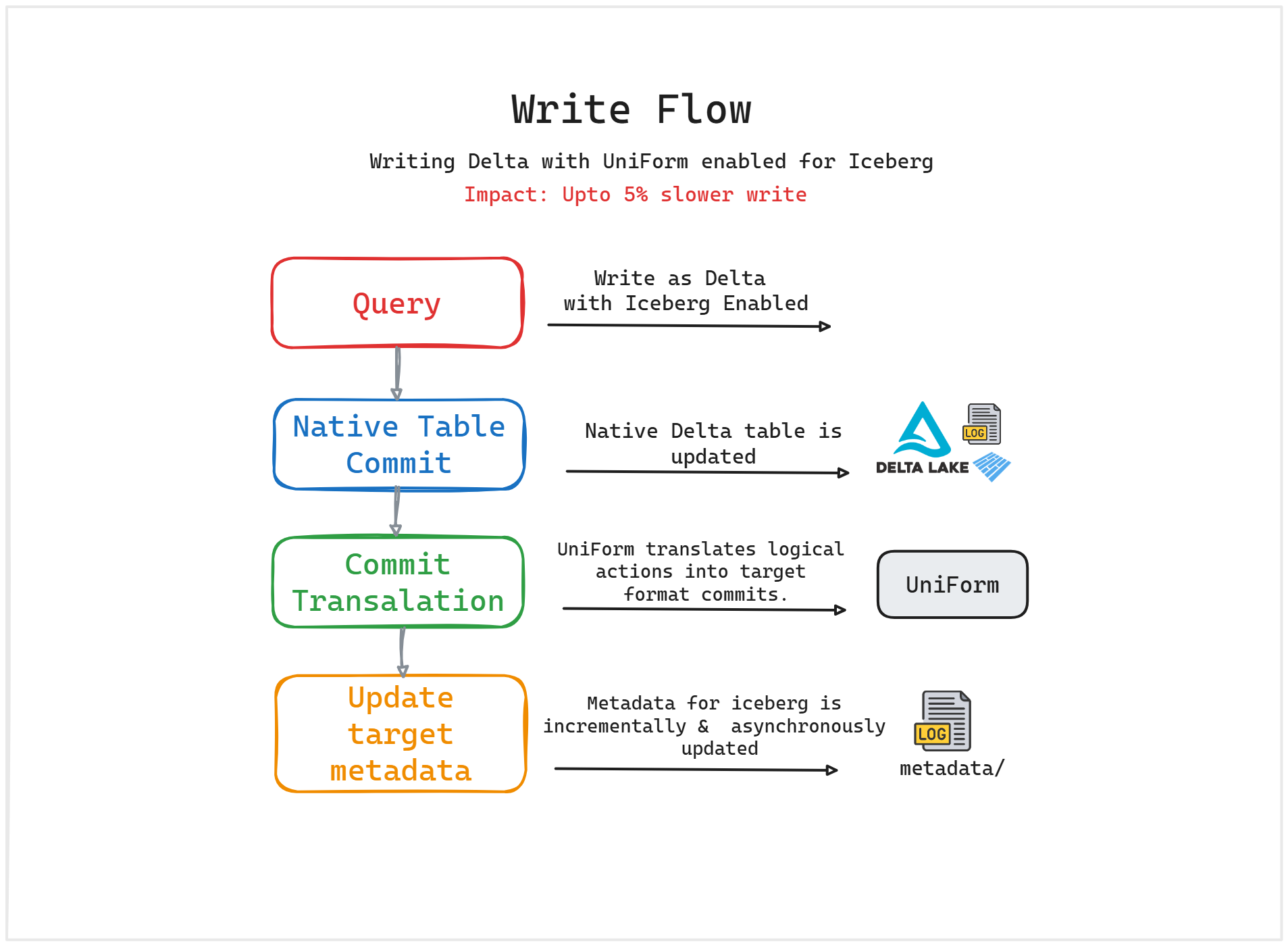 Traditionally, if you want to move data from one format to another, you need to read as source format and write as target format, which generates a copy of data while consuming resources. With Uniform, interoperability is possible as all the open table formats are built on top of Parquet files, the difference is how they store metadata.