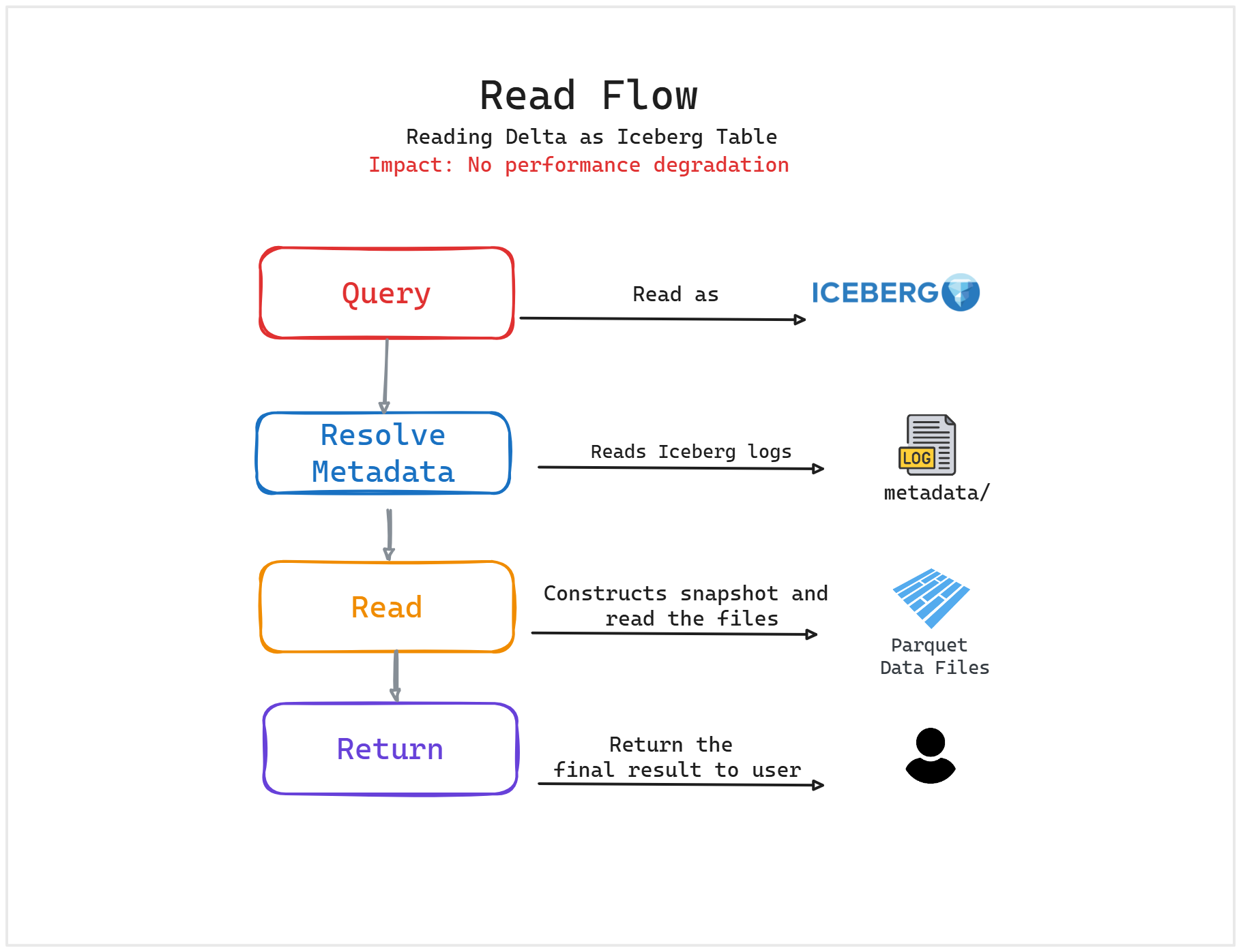 Impact: The table is read directly using Iceberg metadata so there is no impact on read performance.