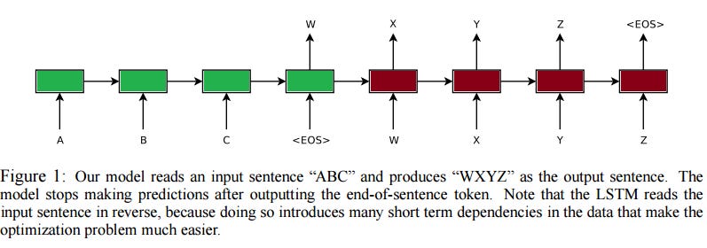 In order to identify the end of sentence the inputs are marked by <EOS>. Each LSTM has used four layers making it a deep network which performs way better.