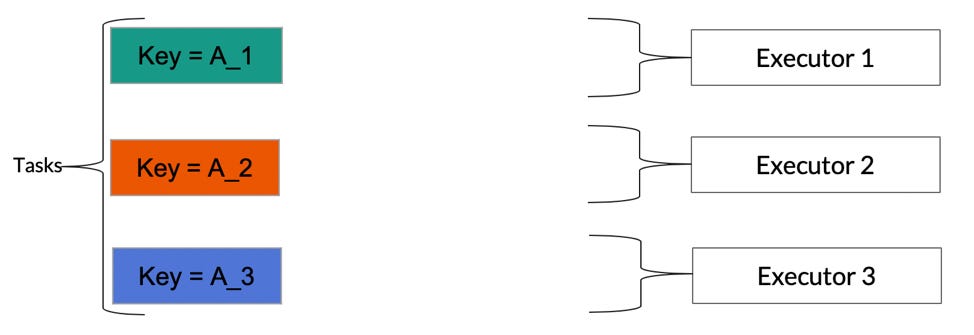 A | 1 | A_3Now if we look at the keys, they can be distributed evenly across executors with no data skewed. You might be asking here that the Table 2 size is same as Table 1, but this example is for the sake of understanding, in the real world a single key is unlikely to have this scenario and a salting factor plays a big role (Salting Factor does not have to be equal to the total number of rows for a key). Else if the Table 2 is big then this technique might not be useful.